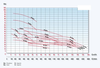 SCOPE OF APPLICATION: Radial impeller pumps with axial intake and upward-facing radial delivery. The main feature of these pumps is that they are capable of generating medium-high flow rates and high discharge heads. These single-impeller pumps are particularly suited for industrial, agricultural and domestic applications. It is recommended that these pumps are used to carry only chemically pure liquids and free of foreign matters, with temperatures not higher than 80°C.